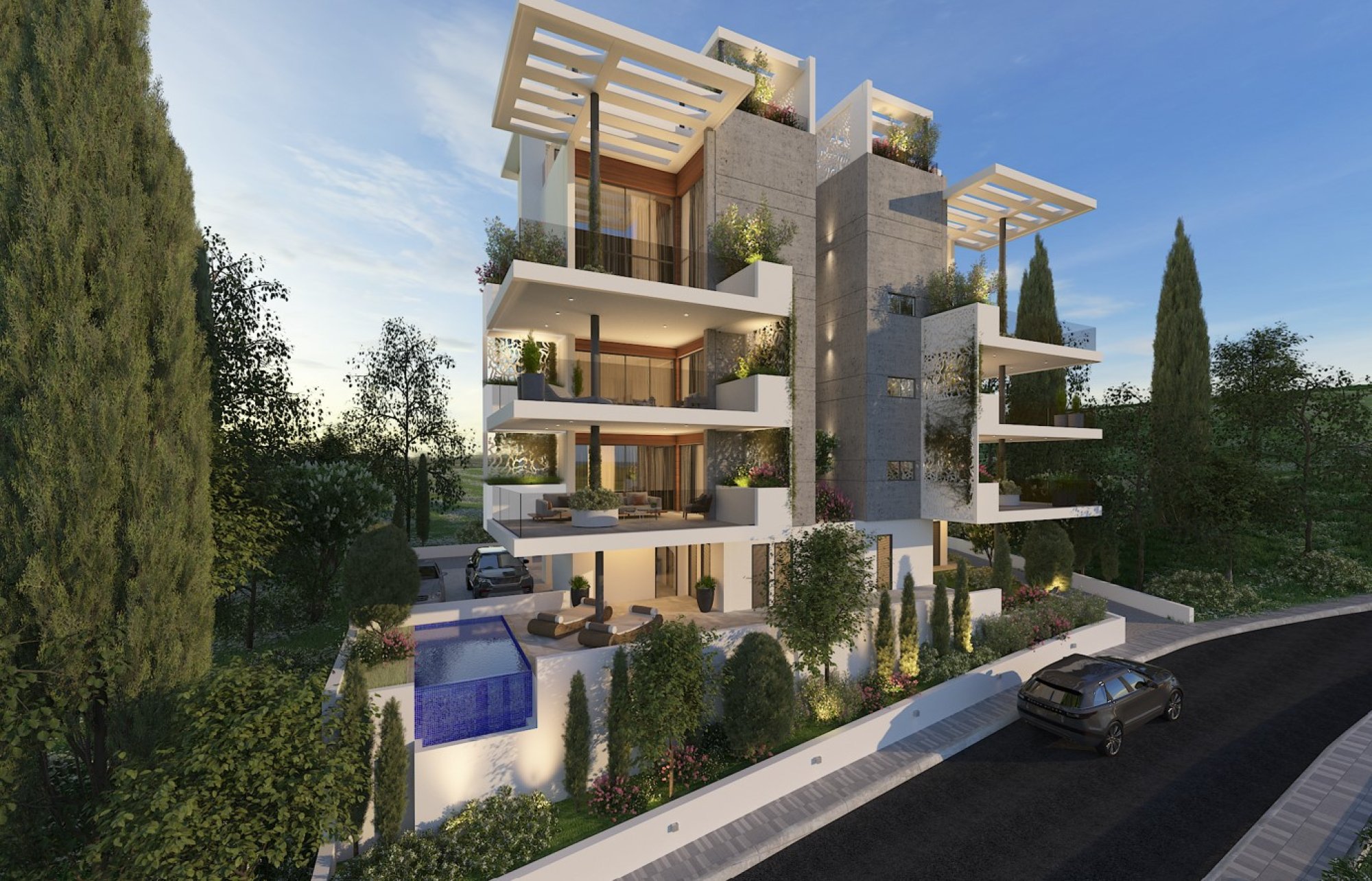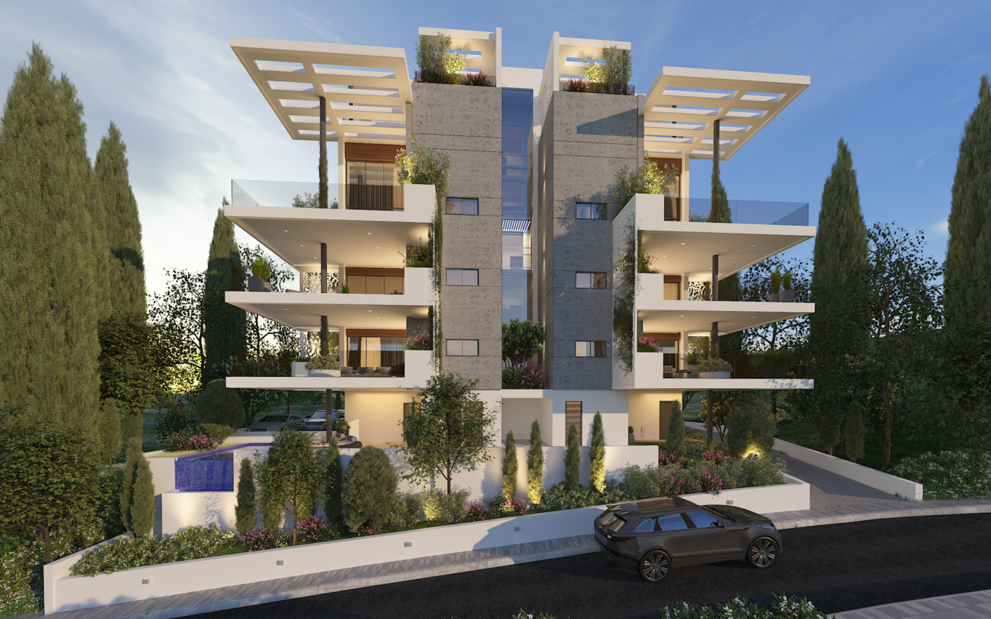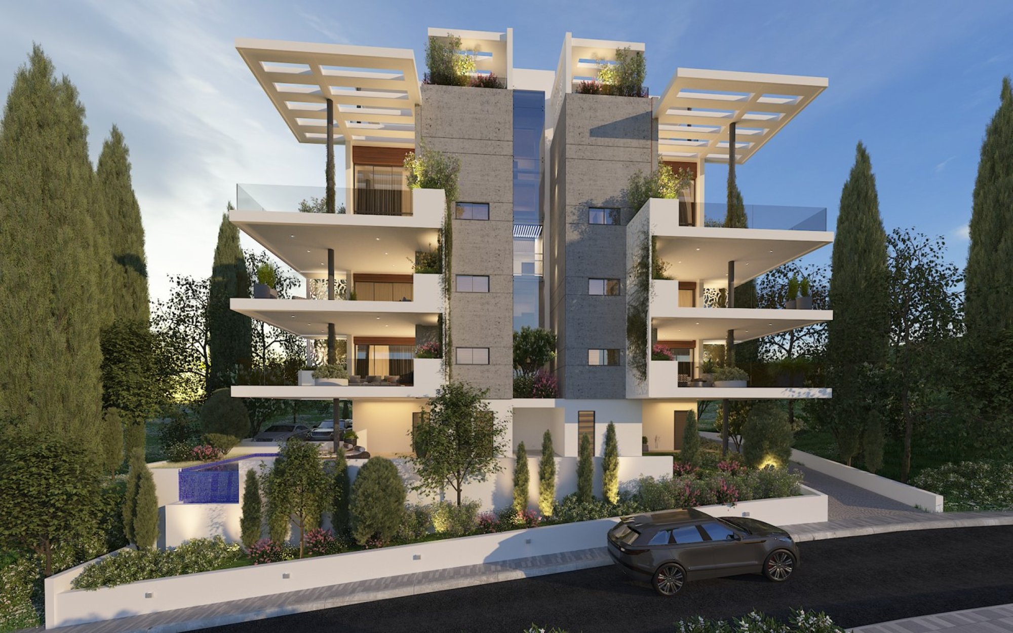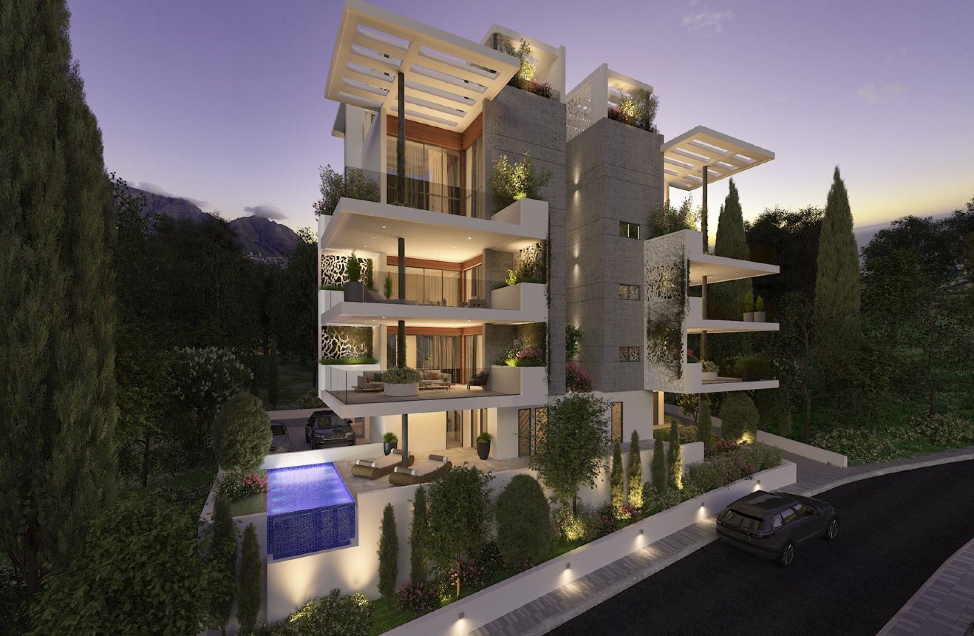 Perched on a tranquil hillside in Germasogeia, these luxurious apartments offer breathtaking mountain and sea views. Located just 4 minutes from the roundabout and only 8 minutes from the beach and city center, the vibrant surroundings include an array of shops, supermarkets, banks, and dining options. The modern complex features two 2-bedroom apartments on each of the first two floors and two 3-bedroom, split-level penthouses on the 3rd and 4th floors, complete with private roof gardens for elevated living experiences.